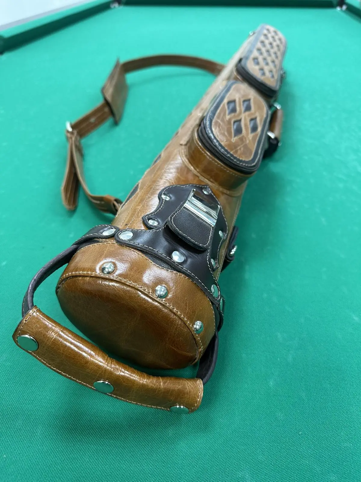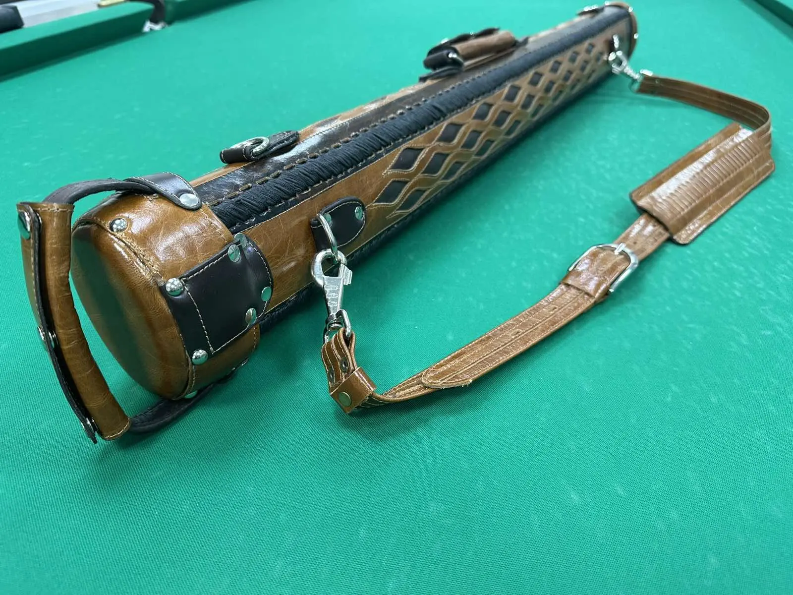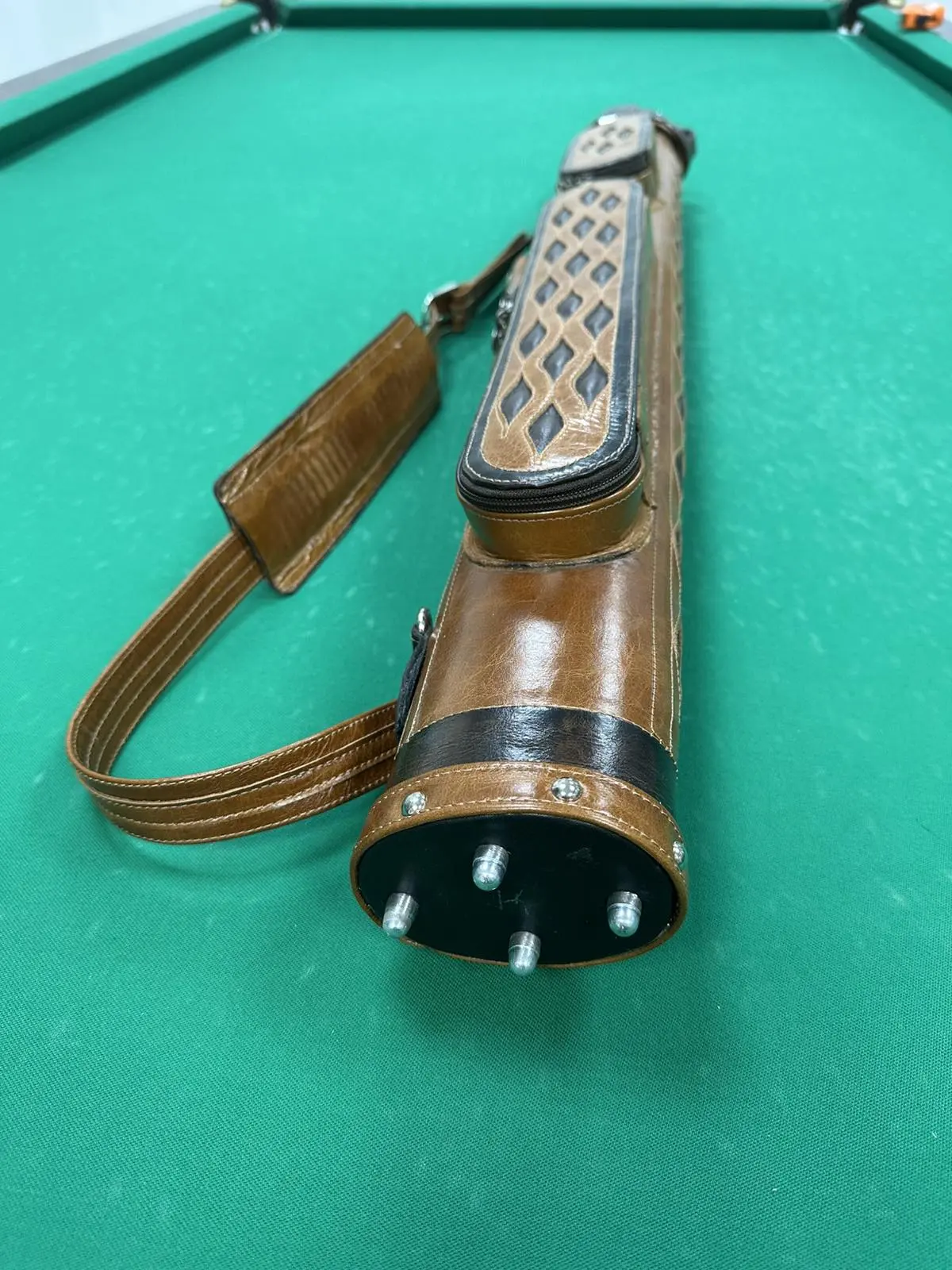 Вишуканість у кожній деталі — ручна трубка ромба втілює бездоганний смак і турботу про більярдний кий. Світло-коричнева шкіра з об’ємним ромбовим візерунком надає аксесуару особливого характеру: стильний, але стриманий, елегантний, але практичний.