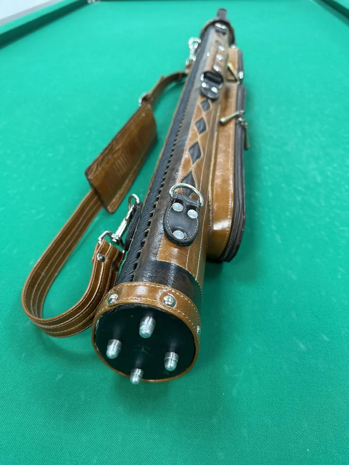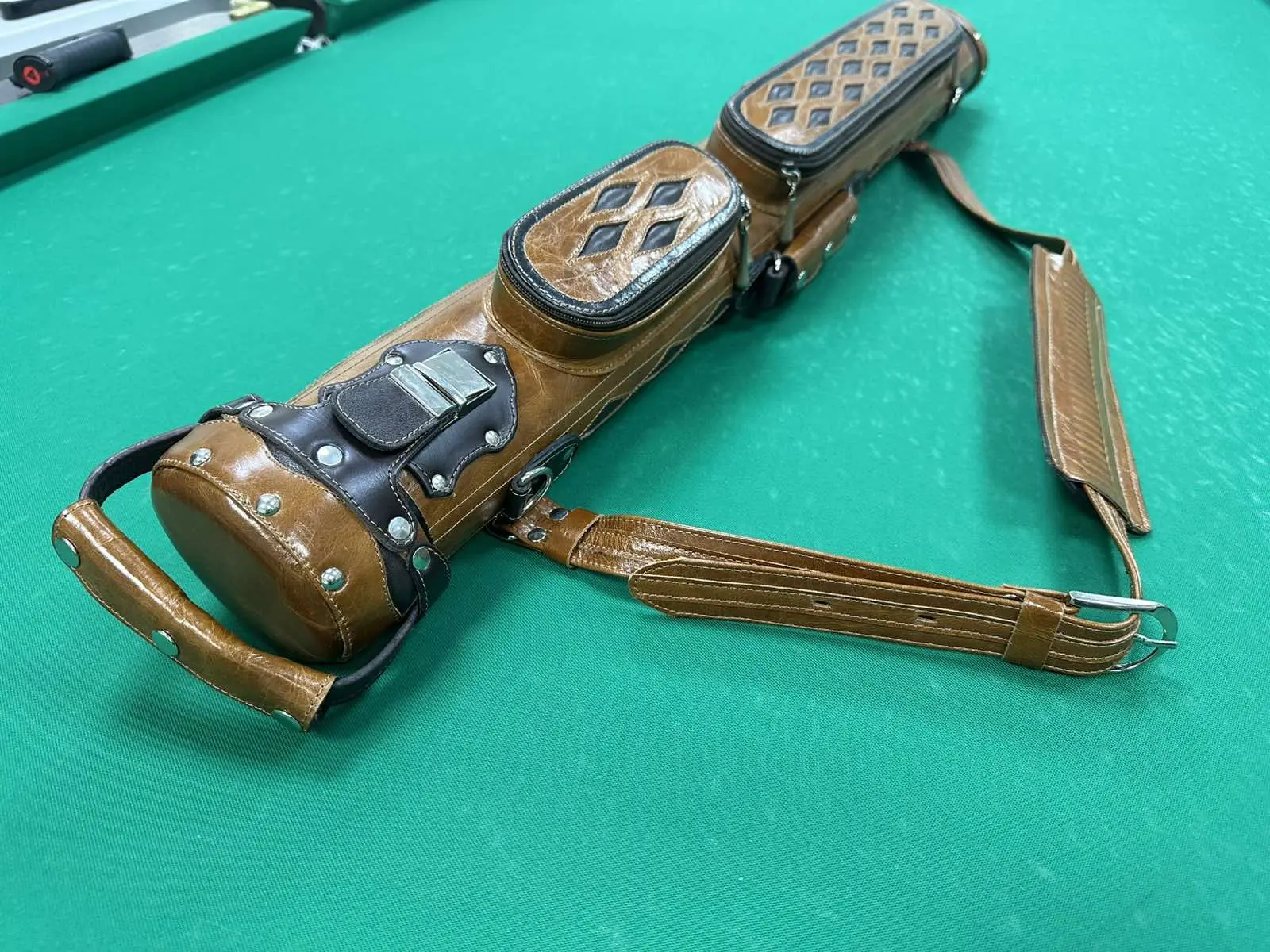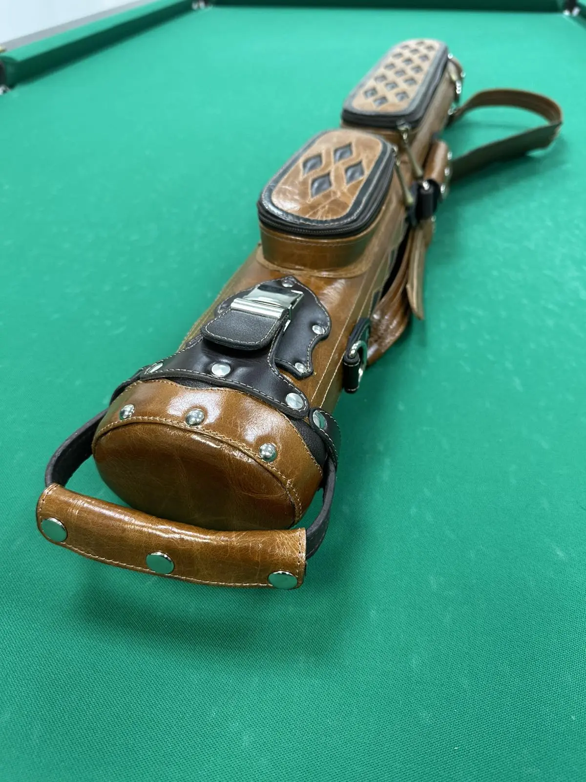 Вишуканість у кожній деталі — ручна трубка ромба втілює бездоганний смак і турботу про більярдний кий. Світло-коричнева шкіра з об’ємним ромбовим візерунком надає аксесуару особливого характеру: стильний, але стриманий, елегантний, але практичний.