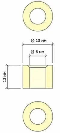 втулок 13 мм, внутрішній діаметр – 6 мм, висота – 13 мм.