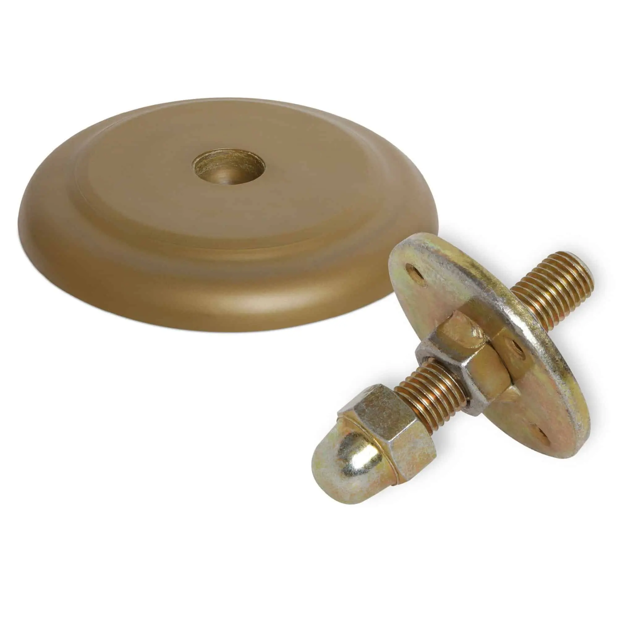 Основание опоры, имеющее диаметр 13,5 см, выполнено из прочного жесткого пластика, стержень и гайка с платформой и отверстиями для крепежа — из металла.